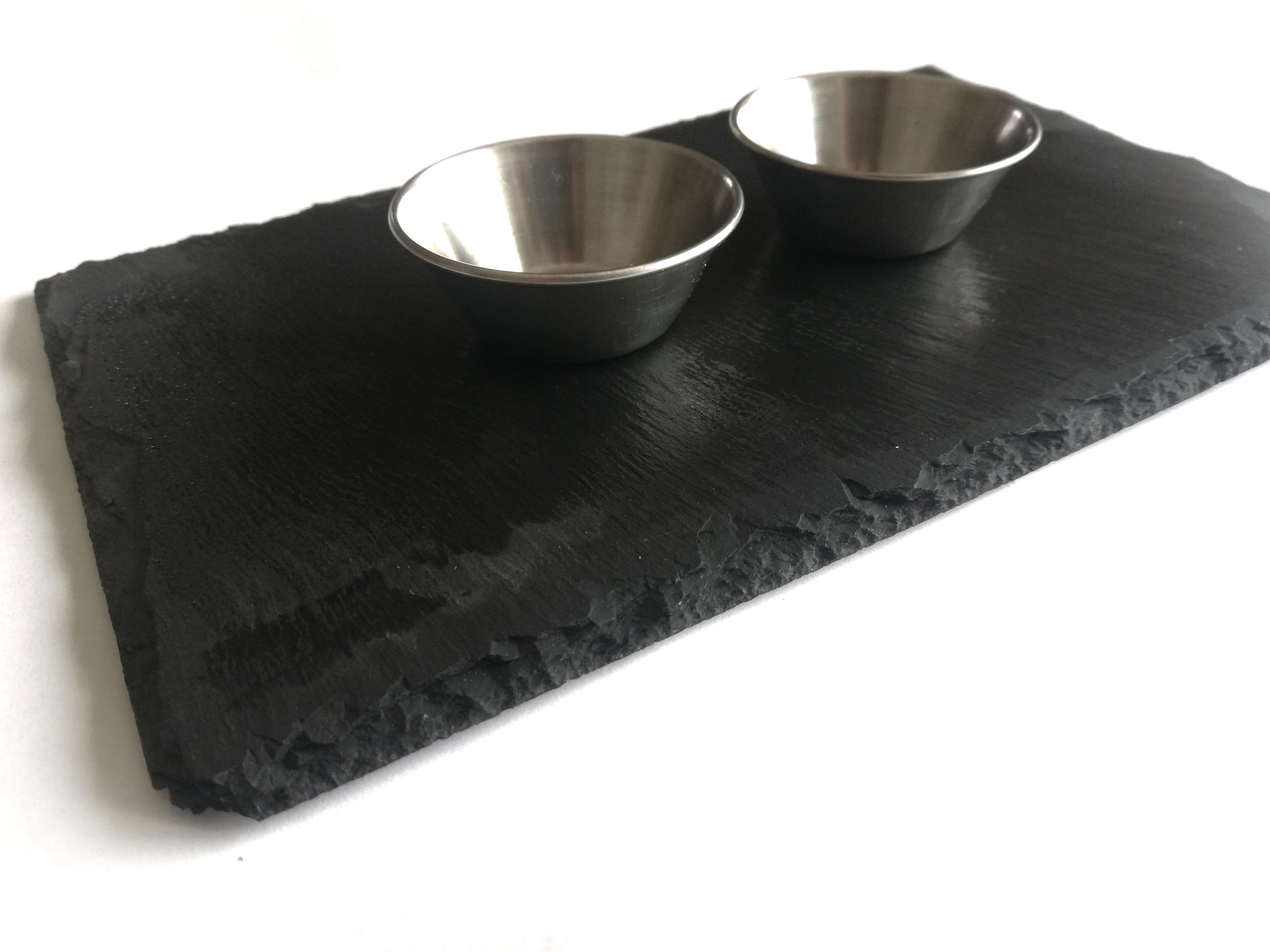 handgefertigt, mit Schieferplatte und 2 Schalen.