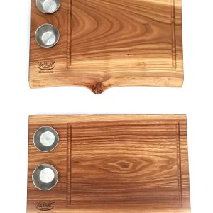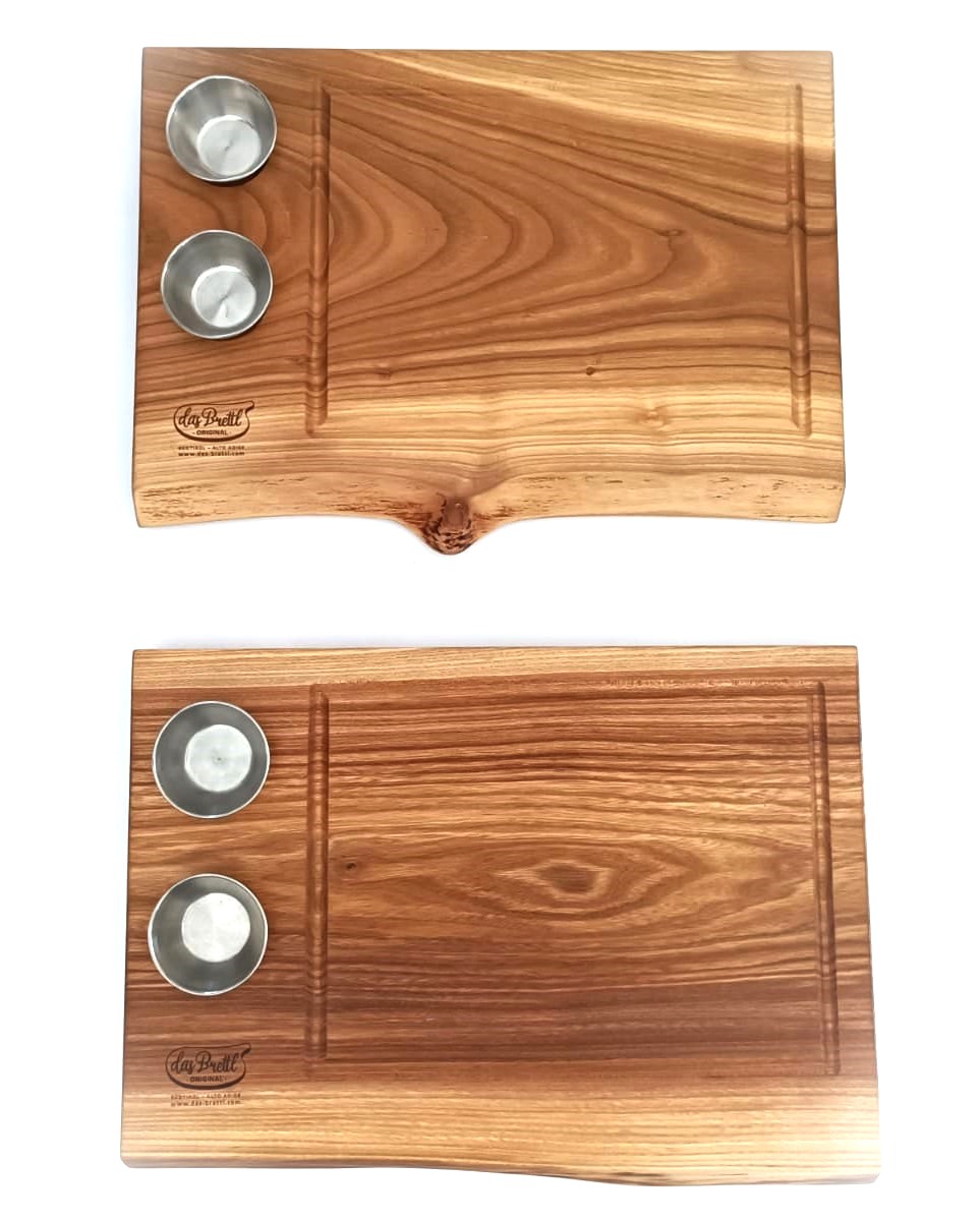Mod. St.Ulrich, Servierbrett aus Ulmen-Baumholz, hochqualitatives Massivholz, handgefertigt, mit 2 Schalen.