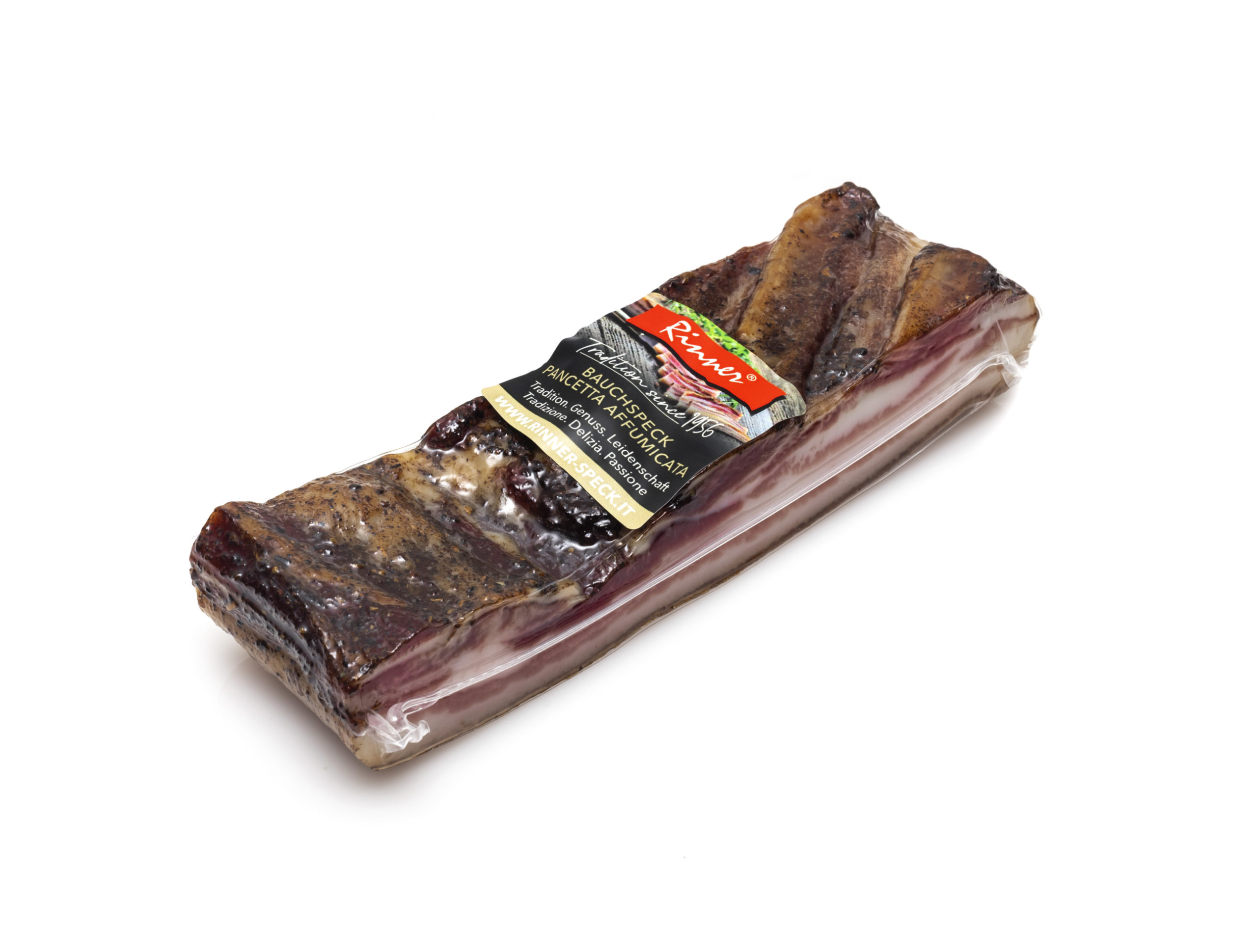 La nostra pancetta è prodotta con la pancia del maiale, sfregata con sale e aromi naturali, come da tradizione, salmistrata a secco e leggermente affumicata. Con almeno 12 settimane di stagionatura, la pancetta viene successivamente lavata e asciugata per essere poi confezionata.