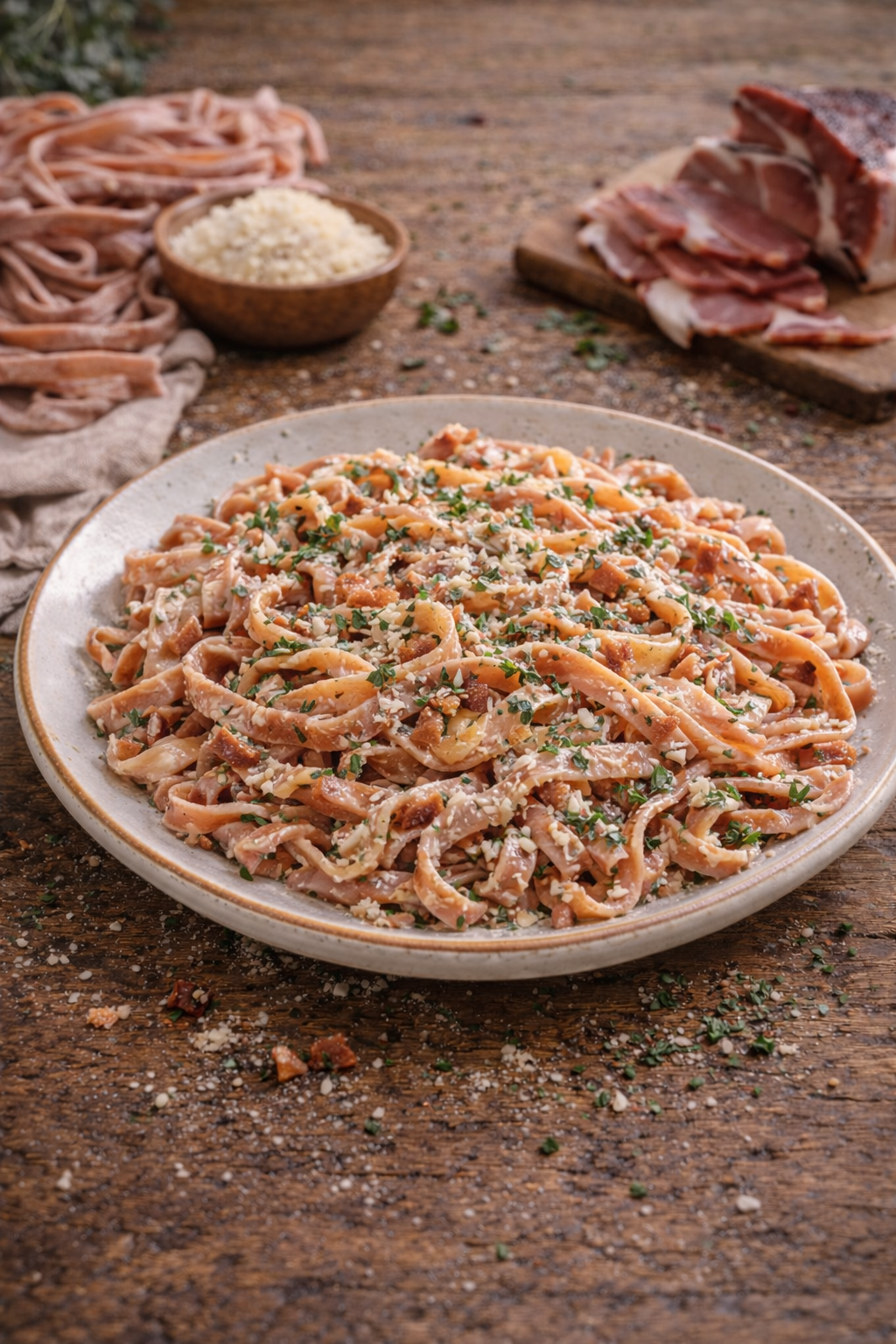 Pasta all‘uovo allo Speck Alto Adige IGP