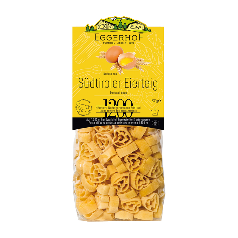 Preparazione: Versare il contenuto della confezione in circa 3 litri d’acqua bollente, salata con 2 cucchiai di sale grosso; mescolare, cuocere per circa 7 min. fino a raggiungere la cottura desiderata. Scolare. Scaldare il burro in una padella e aggiungere la pasta all’uovo; condire con sale e pepe macinato al momento. Buon appetito!