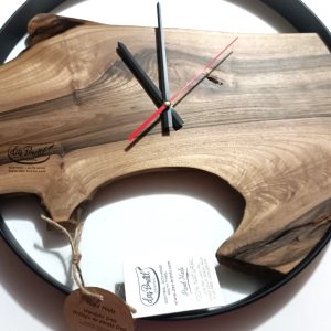 Wanduhr, Massivholz, Metallrahmen, handgefertigt.